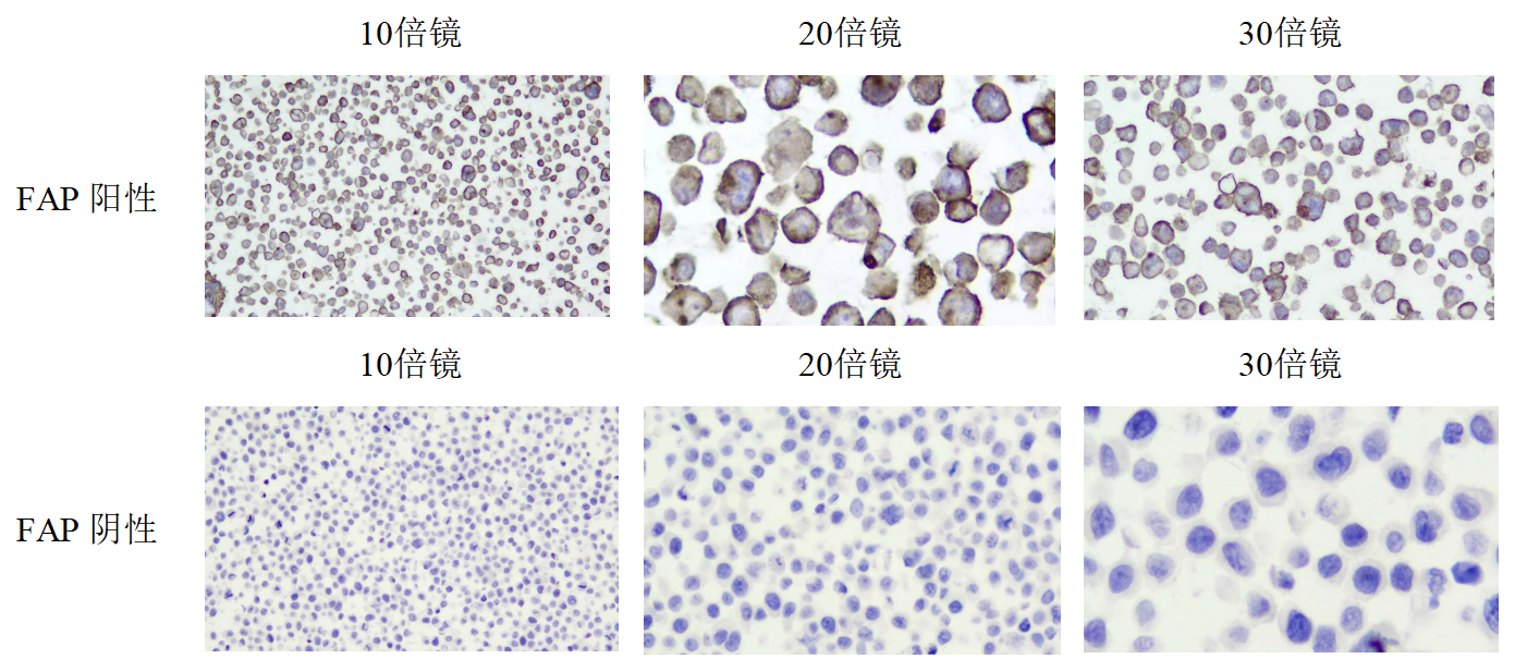| Description | 成纖維細(xì)胞活化蛋白(FAP)是一種具有雙酶活性的絲氨酸蛋白酶,在多種腫瘤中,在不同類型的腫瘤相關(guān)成纖維細(xì)胞(CAFs)中過表達(dá),而在健康成人組織中表達(dá)很少。CAFs上FAP過表達(dá)與不良預(yù)后相關(guān),在腫瘤的發(fā)生、進(jìn)展和侵襲中發(fā)揮重要作用。因此,F(xiàn)AP被認(rèn)為是癌癥治療的一個重要治療靶點。 |