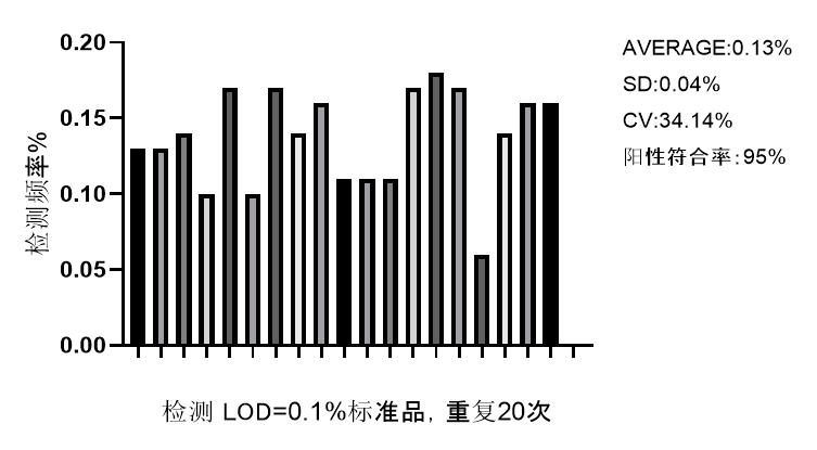 Figure 3. 檢測LOD標(biāo)準(zhǔn)品,重復(fù)20次。陽性符合率≥95%,代表該濃度為試劑盒檢出限。