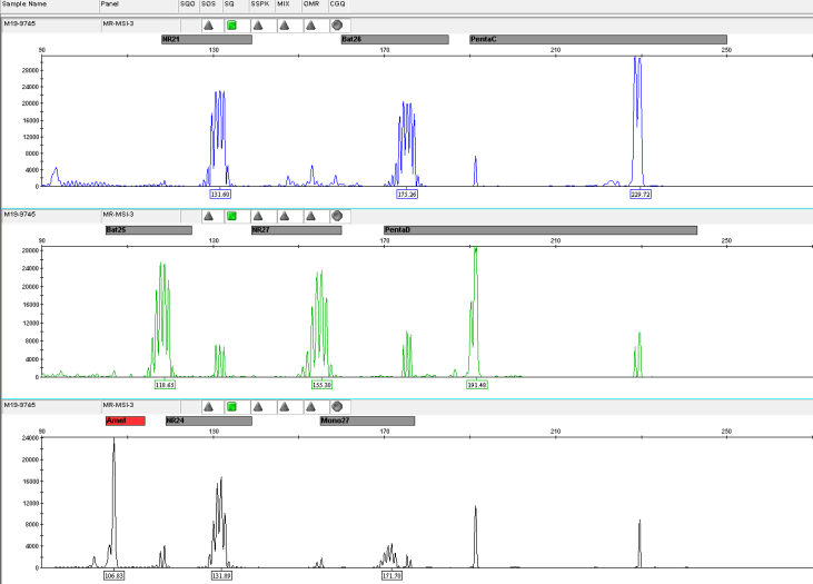 微衛(wèi)星是人類基因組的一段串聯(lián)重復序列,一般在1~6bp之間,又被稱作短串連重復(Short Tandem Repeats,STRs)或簡單重復序列(Simple Sequence Repeat,SSRs)。 微衛(wèi)星不穩(wěn)定(Microsatellite Instability,MSI)指的是微衛(wèi)星重復次數減少或者增加,微衛(wèi)星不穩(wěn)定的內在機制是錯配修復(MMR)系統(tǒng)失調,從而限制了糾正微衛(wèi)星自發(fā)的長度改變的體細胞突變的能力,體細胞突變積累,最終形成MSI。