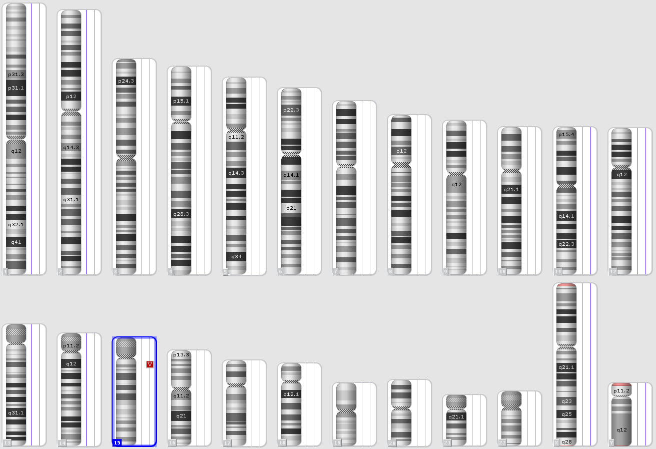 | 染色體(GRCh37)異常區(qū)域 (CMA) | chr15:22,770,422-28,644,578 | ||||||||||||||||||||||||||||||||||||||||||||||||