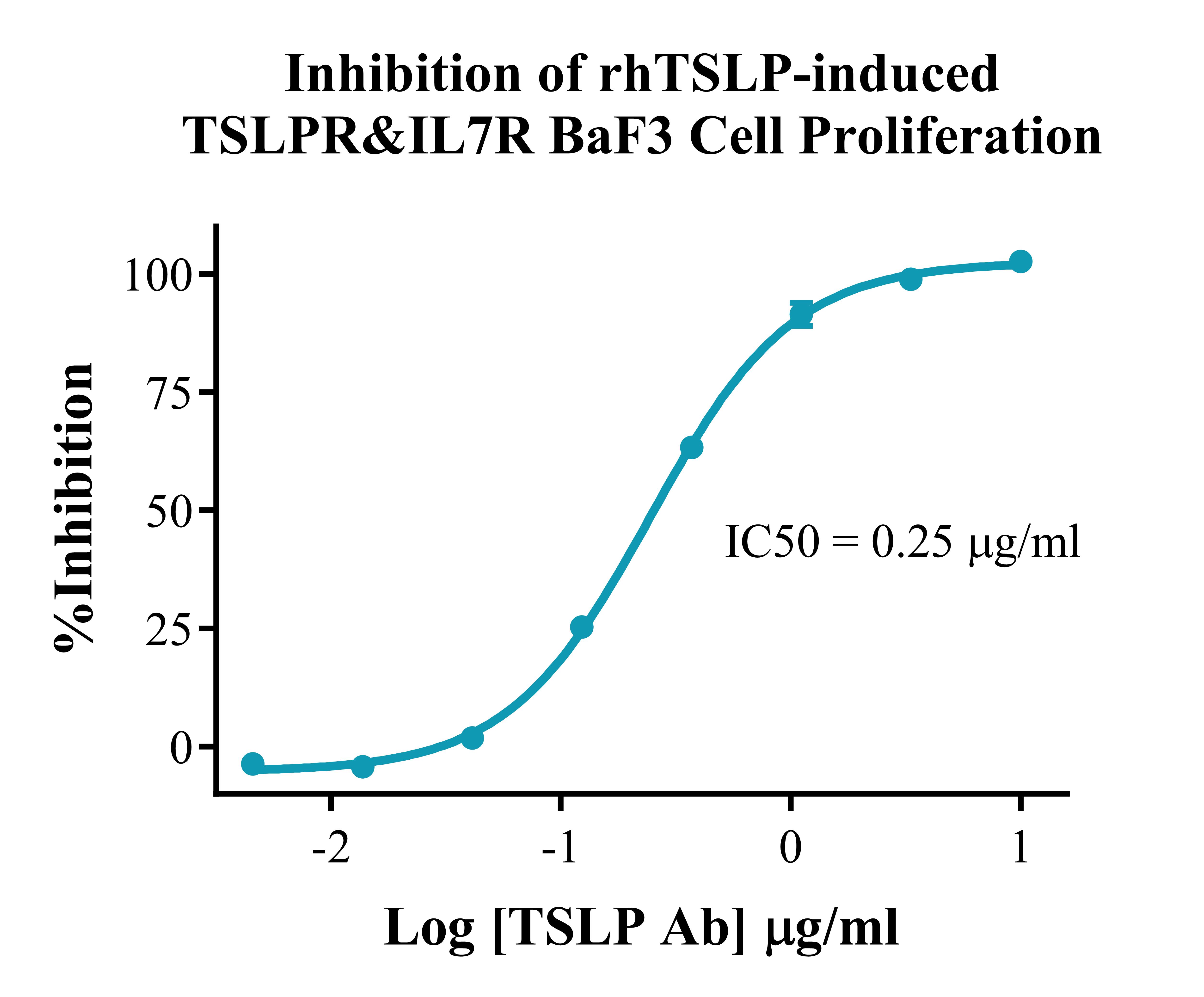 Figure 3. Inhibition of rhTSLP-induced TSLPR&IL7R BaF3 Cell Proliferation. |