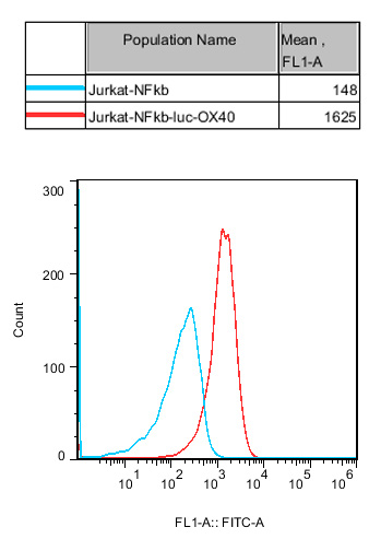 Figure 2. Recombinant OX40/NFκB-Luc/Jurkat stably expressing human OX40. |