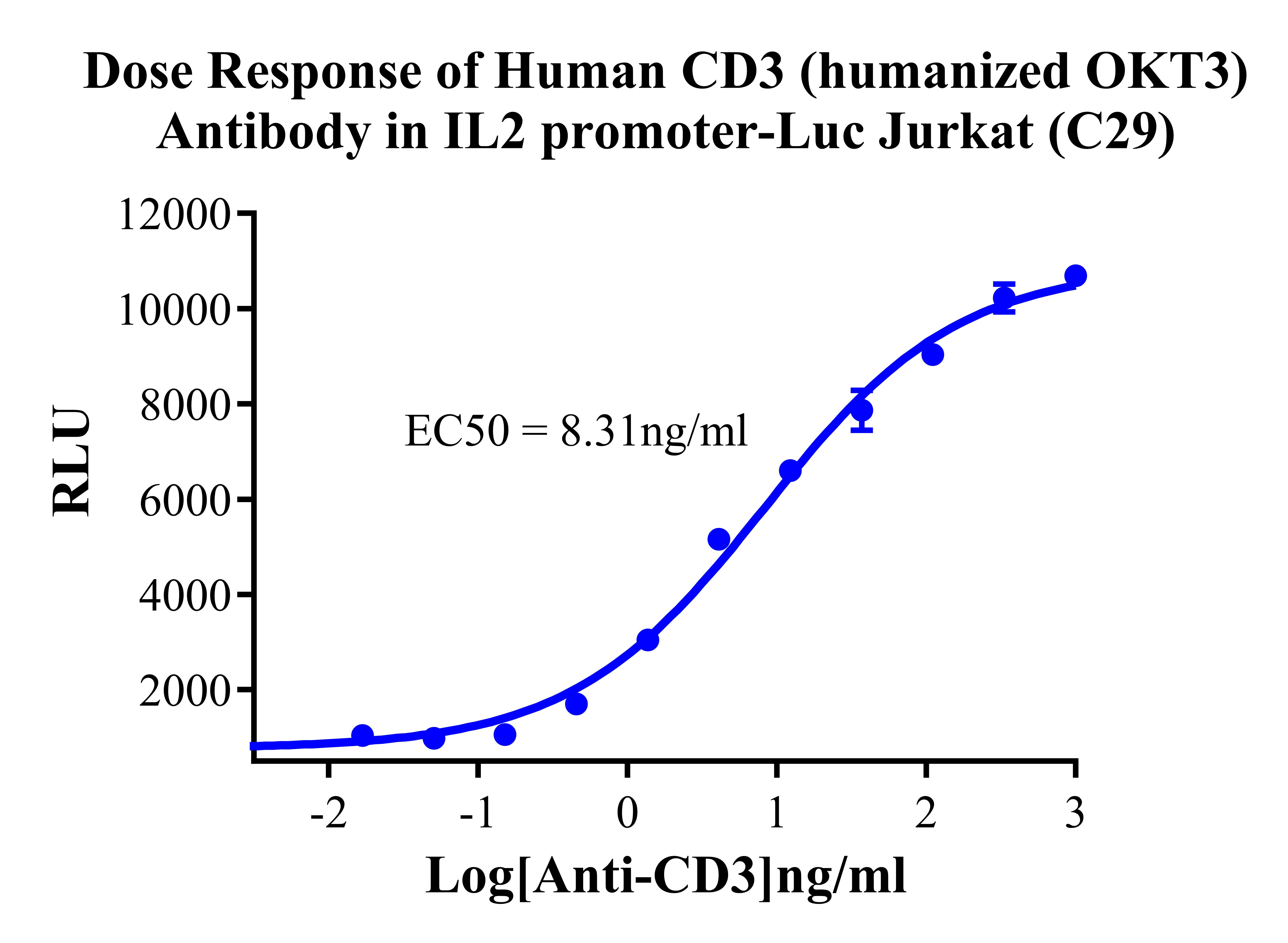 Figure 3. Dose Response of Human CD3(humanized OKT3) Antibody in IL2 Promoter-Luc Jurkat (C29).
