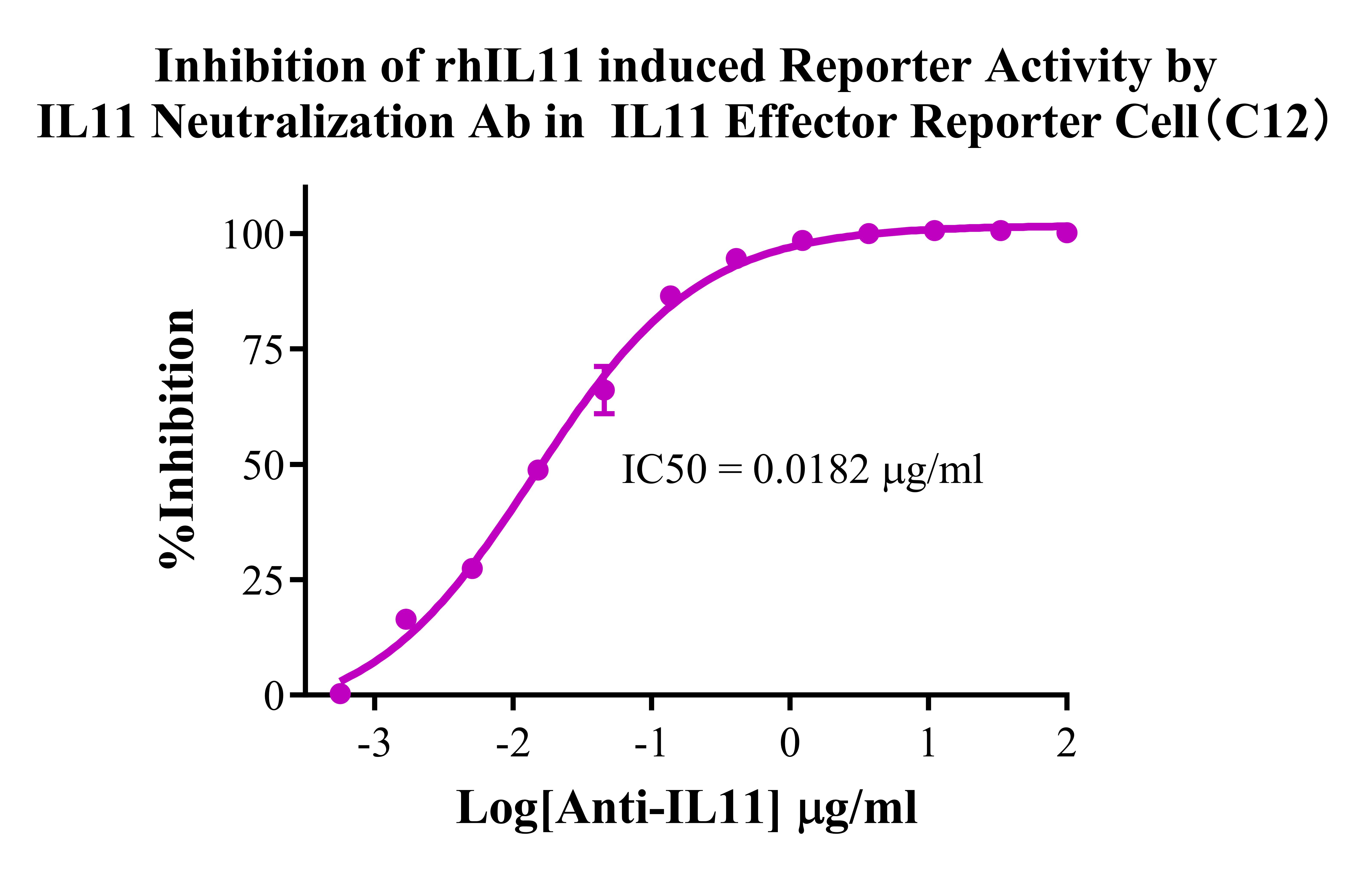 Figure 4. Inhibition of rhIL11 induced Reporter Activity by IL11 Neutralization Ab in IL11 Effector Reporter Cell(C12).