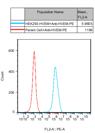 | HVEM HEK293 細胞在 HEK293 細胞的基礎上,穩(wěn)定表達人 HVEM。 | |