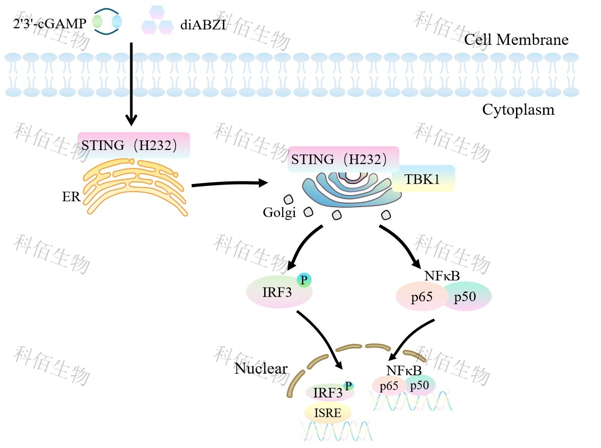 | STING(干擾素基因刺激因子)又稱 MPYS、TMEM173、MITA 和 ERIS,是一種跨膜蛋白,是環(huán)狀二核苷酸(CDN)的直接傳感器。CDN 是細(xì)菌信號轉(zhuǎn)導(dǎo)中普遍存在的第二信 使分子,是哺乳動物細(xì)胞的防御觸發(fā)器。當(dāng)細(xì)菌病原體攻擊時,釋放到細(xì)胞中的 CDN 直接與 STING 結(jié)合,激活的 STING 和 TANK 結(jié)合激酶-I (TBK1)相互作用以誘導(dǎo)活性干擾 素調(diào)節(jié)因子(IRF3)二聚體,然后該二聚體與細(xì)胞核中的干擾素刺激反應(yīng)元件(ISRE)結(jié) 合并導(dǎo)致 IFN-α/β 的產(chǎn)生。IFNβ的產(chǎn)生是 STING 活化的標(biāo)志。腫瘤微環(huán)境(TME)中由于 天然免疫產(chǎn)生的信號傳導(dǎo)是導(dǎo)致腫瘤特異性 T 細(xì)胞激活和腫瘤浸潤性淋巴細(xì)胞(TIL)浸 潤的關(guān)鍵因素。其中尤其以 I 型 IFN 對腫瘤特異性 T 細(xì)胞的活化最為關(guān)鍵。因此,STING 激動劑可以通過誘導(dǎo)Ⅰ型干擾素基因的表達(dá),激活包括樹突狀細(xì)胞等免疫刺激細(xì)胞,改變腫瘤微環(huán)境并誘導(dǎo)腫瘤特異性 T 細(xì)胞的產(chǎn)生,從而通過調(diào)節(jié)免疫系統(tǒng)達(dá)到抗腫瘤的目的。 | |