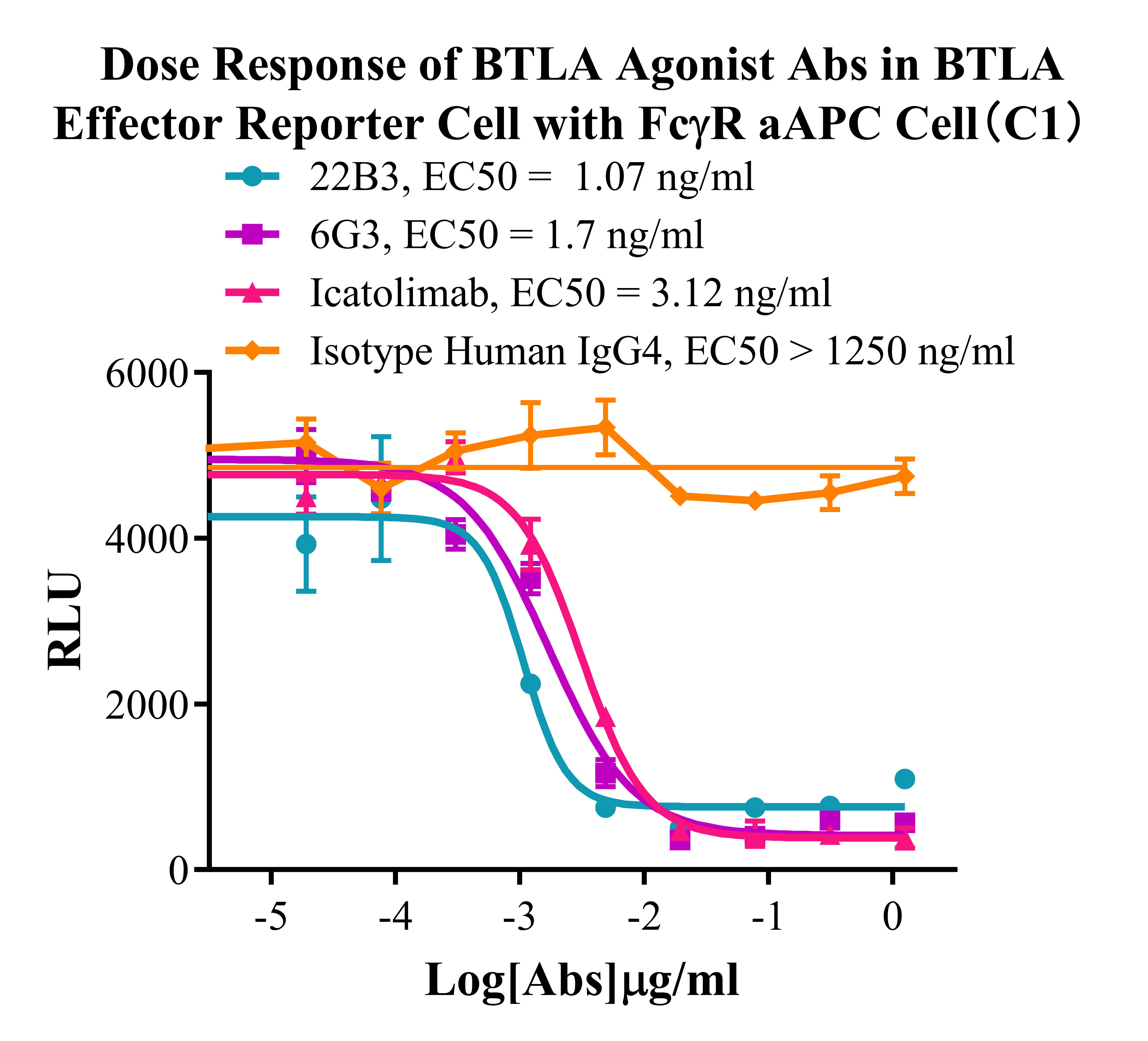 Figure 3. Dose Response of BTLA Agonist Abs in BTLA Effector Reporter Cell with FCγR aAPC Cell(C1).