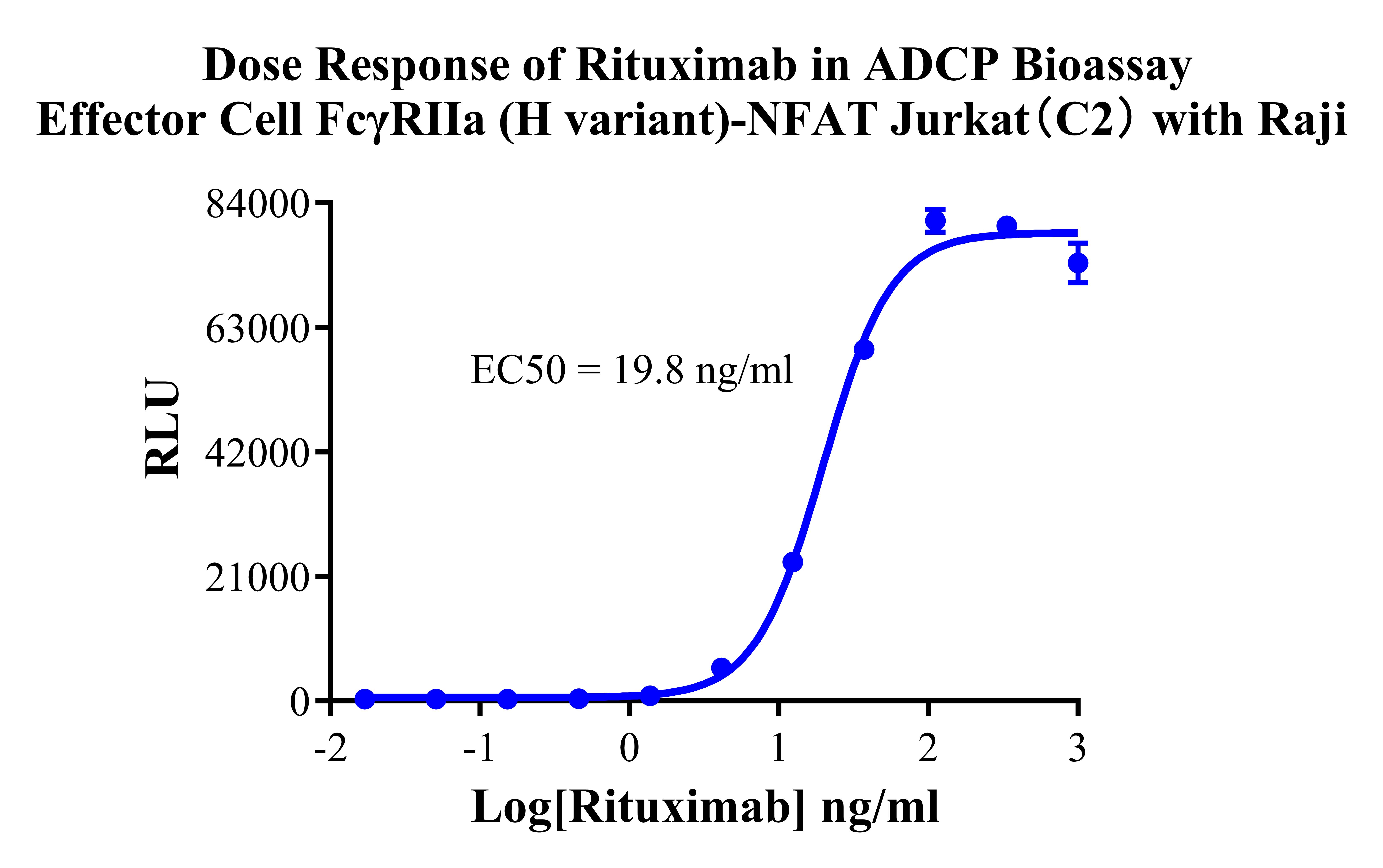 Figure 2. Dose Response of Rituximab in ADCP Bioassay Effector Cell FcγRIIa (H variant)-NFAT Jurkat(C2) with Raji.