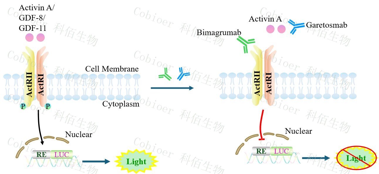 Activin A Effector Reporter Cell 報(bào)告基因藥靶模型很好的模擬了體內(nèi) Activin A 的信號(hào)轉(zhuǎn)導(dǎo)過程,原理見下圖所示。![]() Figure 1. Activin A Effector Reporter Cell 細(xì)胞模型原理圖 |