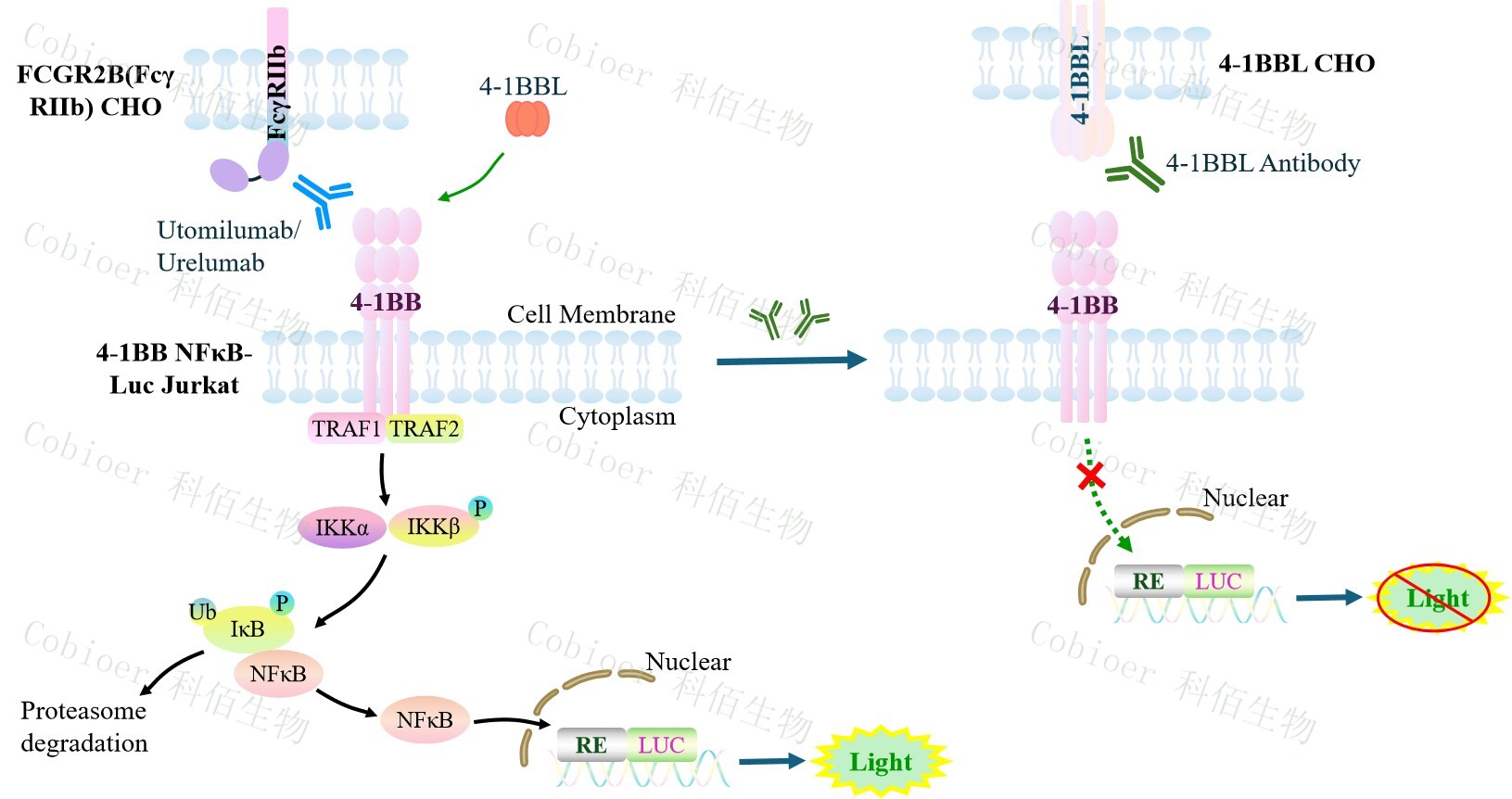 ![]() Figure 1. 4-1BB NFκB-Luc Jurkat 細(xì)胞模型原理圖 |