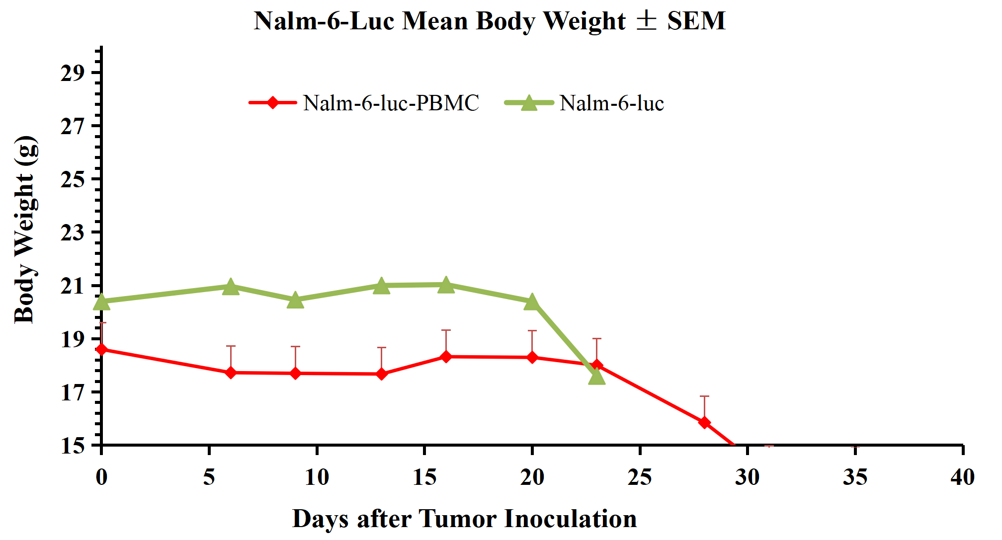 Figure 3. Nalm-6-Luc Mean Body Weight ± SEM.