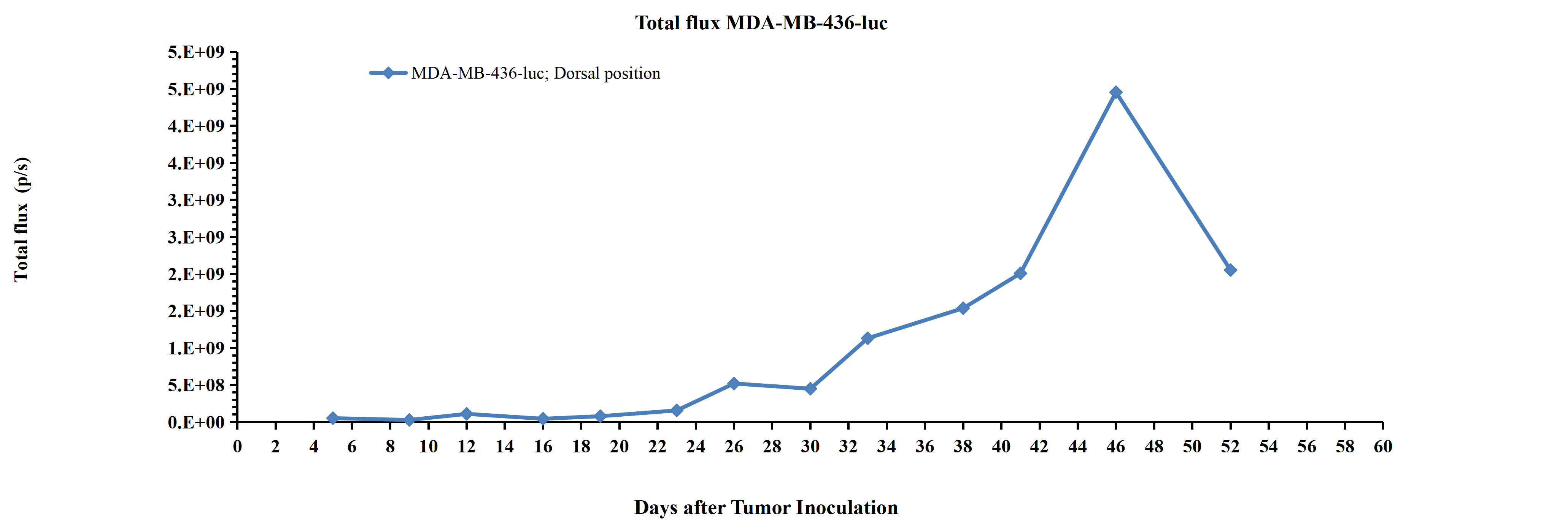 Figure 2. Stability test results. MDA-MB-436-Luc cells showed at least 32 passage stability with similar luminescence unit. |