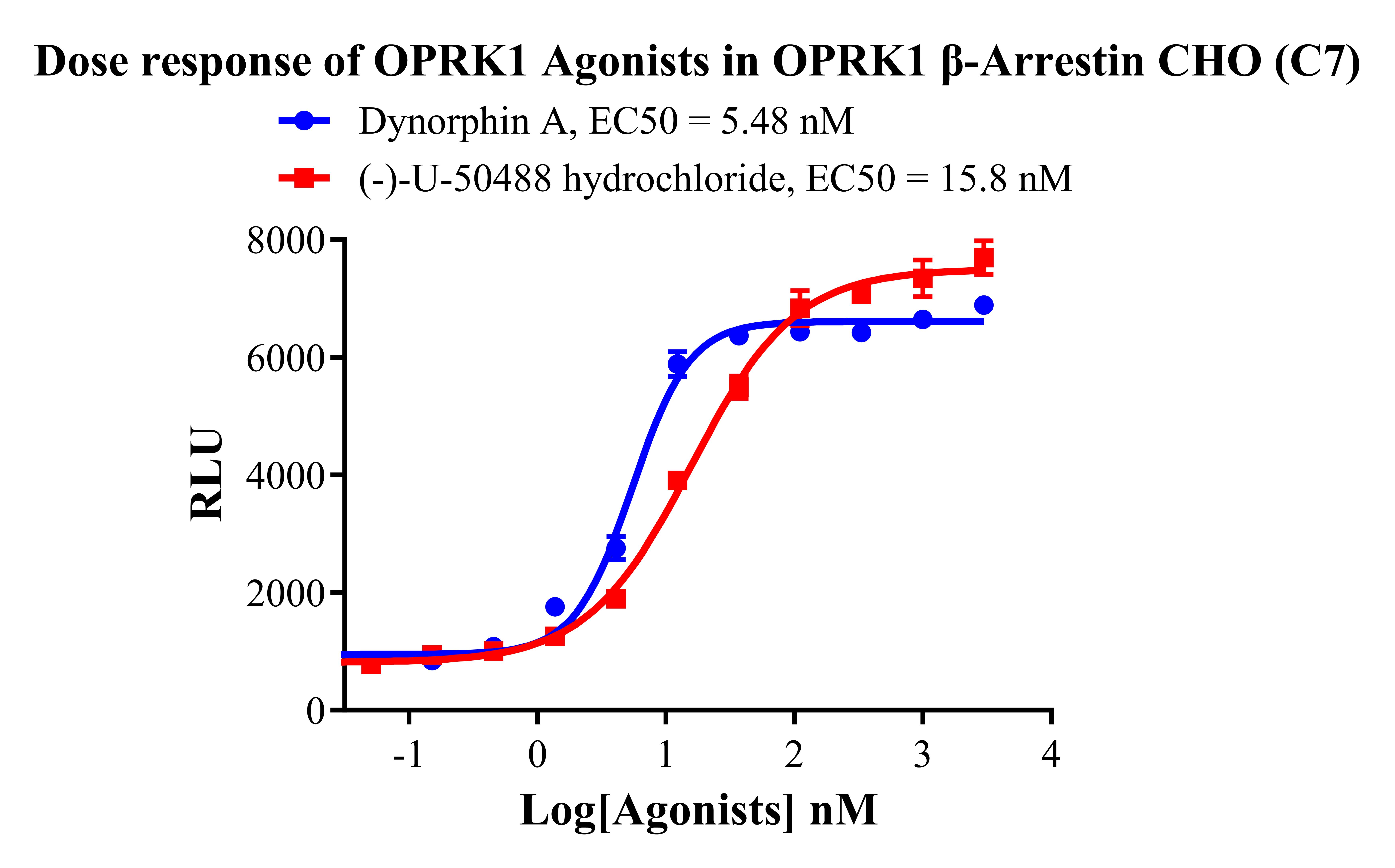 IV. Representative Data![]() Figure 2. Recombinant OPRK1 β-Arrestin CHO stably expressing OPRK1. ![]() Figure 3. Dose response of OPRK1 Agonists in OPRK1 β-Arrestin CHO(C7). |