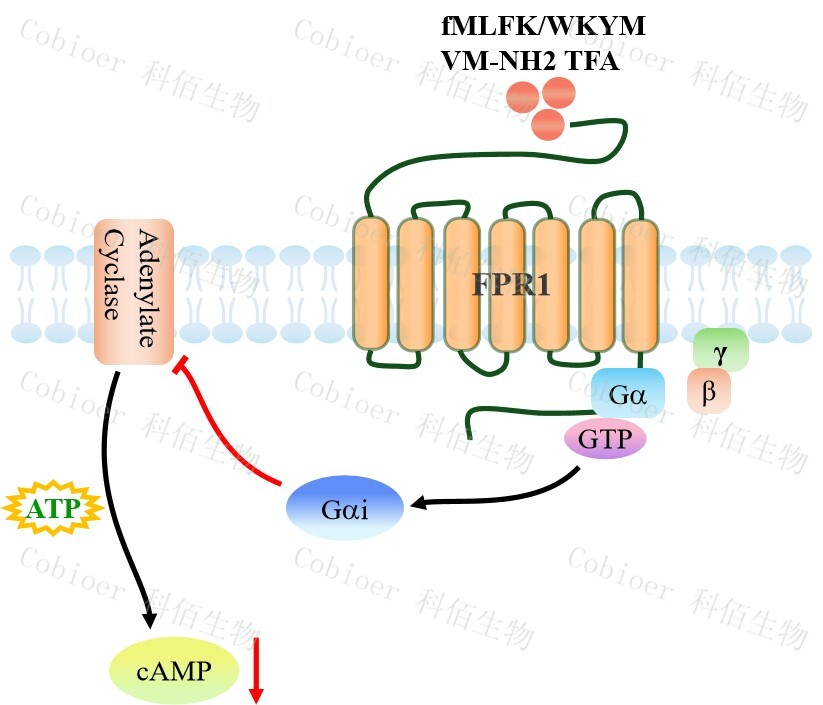 甲酰肽受體(FPR)屬于 G 蛋白偶聯(lián)受體(GPCR)家族,是趨化受體和模式識別受 體(PRR),可識別細(xì)菌和線粒體衍生的甲?;?。FPRs 家族包括三個成員(FPR1、 FPR2 和 FPR3),它們在多種組織和細(xì)胞類型中廣泛表達(dá),調(diào)節(jié)多種生物功能,如血管生 成、細(xì)胞增殖和防止細(xì)胞死亡。 |