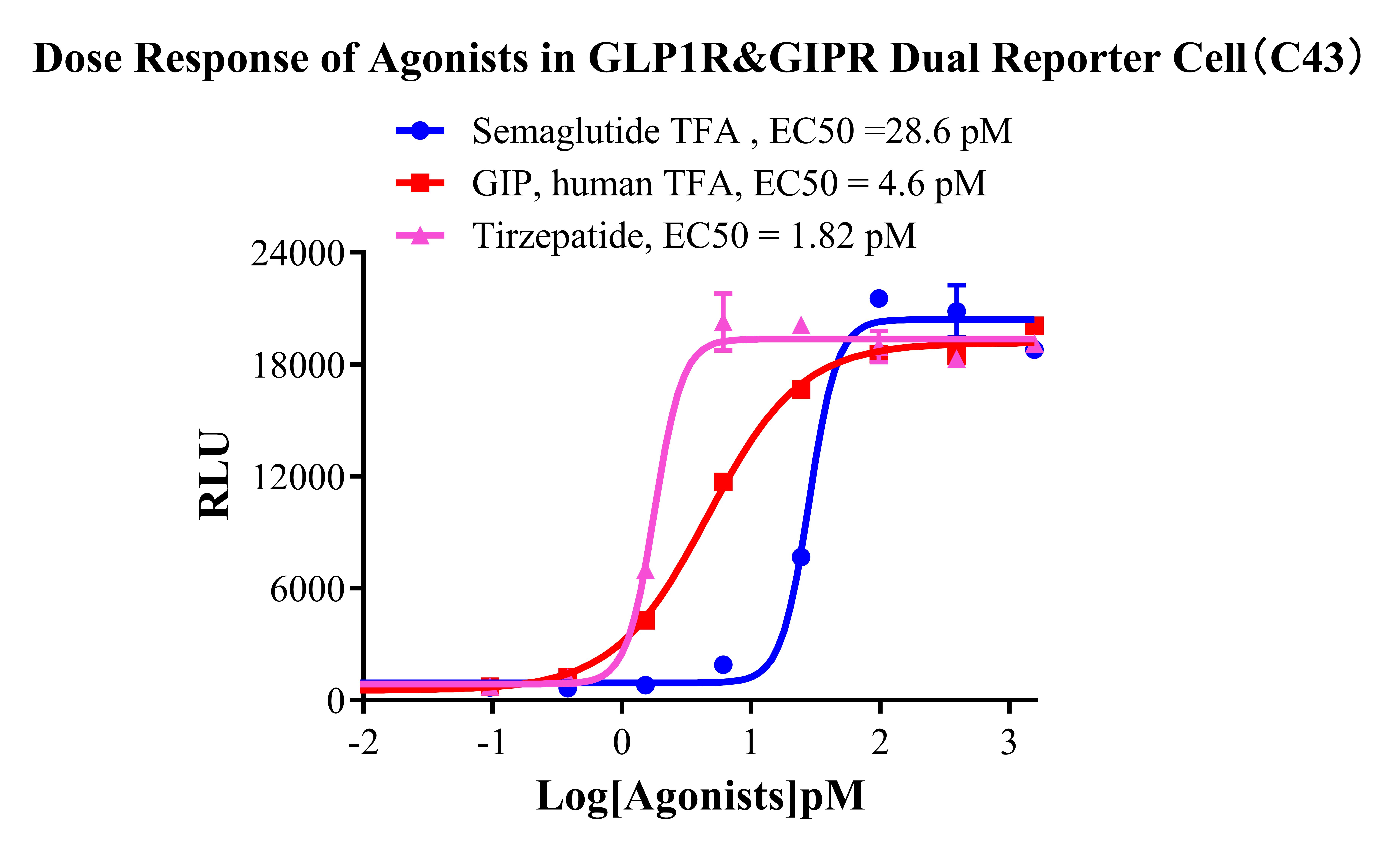 Figure 3. Dose response of Agonists in GLP1R&GIPR Dual Reporter Cell(C43).