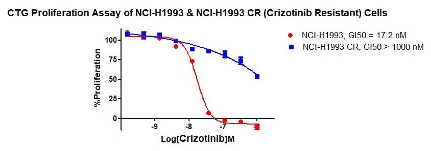 Figure 1. CTG Proliferation Assay of NCI-H1993 &NCI-H1993 CR (Crizotinib Resistant) Cells. |