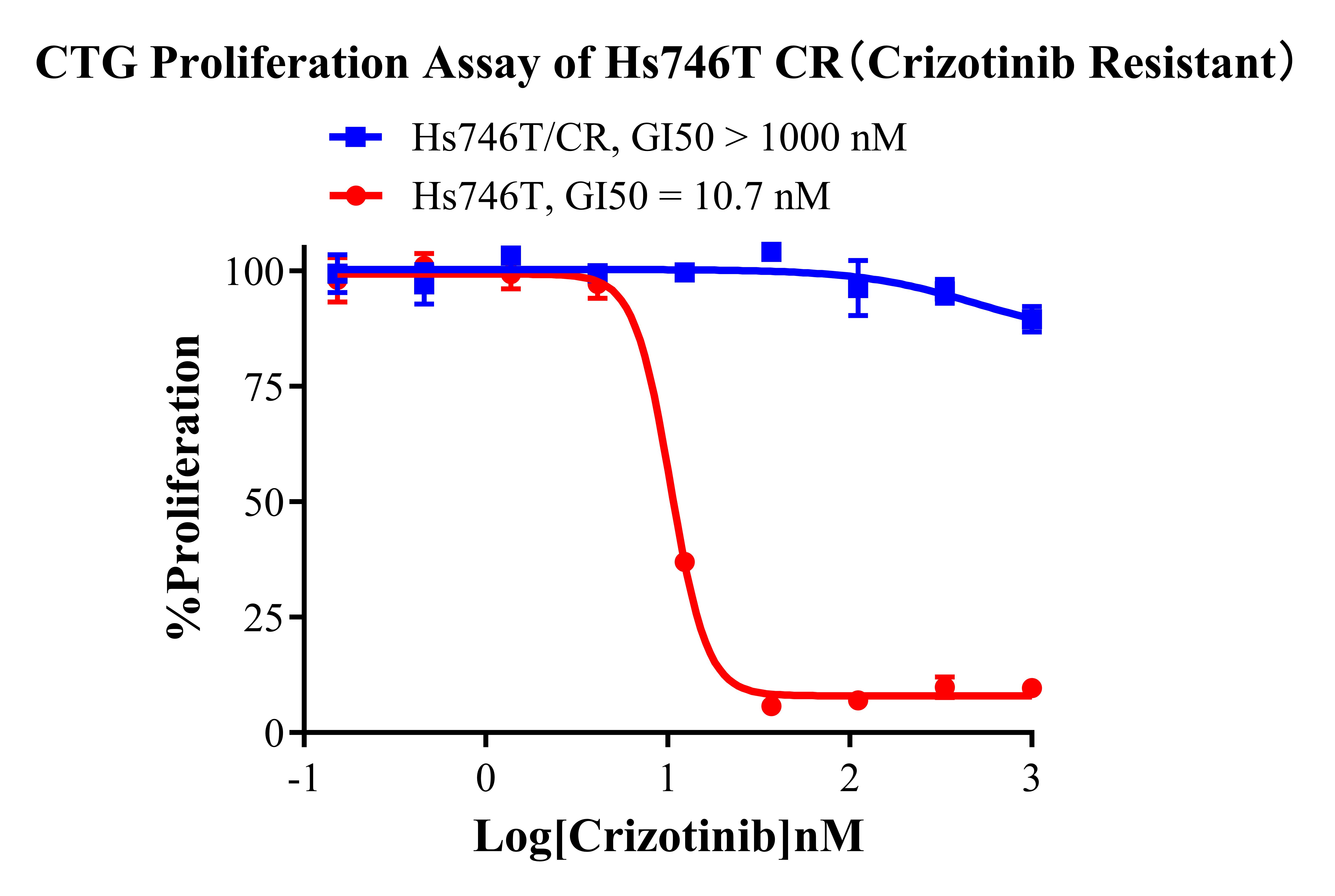 Figure 1. CTG Proliferation Assay of Hs746T CR (Crizotinib Resistant). |