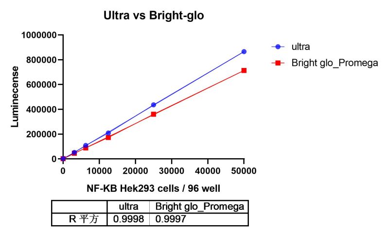 Ultra luciferase detection kit provides an assay reagent that generates ultra-bright signal in the presence of firefly luciferase. The assay reagent is prepared by mixing substrate and cell lysis buffer
