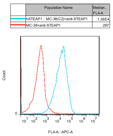 | 前列腺六跨膜上皮抗原 1(STEAP1),又稱(chēng)為 PRSS2,一種六次跨膜蛋白,具有 N 端和 C 端均在細(xì)胞內(nèi)的結(jié)構(gòu),屬于 STEAP 家族,該家族還包含成員 STEAP1B、STEAP2、 STEAP3、STEAP4。其中,STEAP1B 是 STEAP1 的截短同源物,是一個(gè)四次跨膜蛋白。 STEAP1 在前列腺上皮細(xì)胞中高表達(dá),但在其他正常組織中表達(dá)較低,在前列腺癌、膀胱 癌、肺癌、乳腺癌等多種癌癥中高表達(dá)。STEAP1 參與細(xì)胞內(nèi)的氧化還原反應(yīng),可能在鐵 代謝和細(xì)胞增殖中發(fā)揮作用。 | |