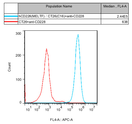 IV. Representative Data![]() Figure 1. Recombinant hCD228(MELTF)/CT26 stably expressing hCD228(MELTF). |