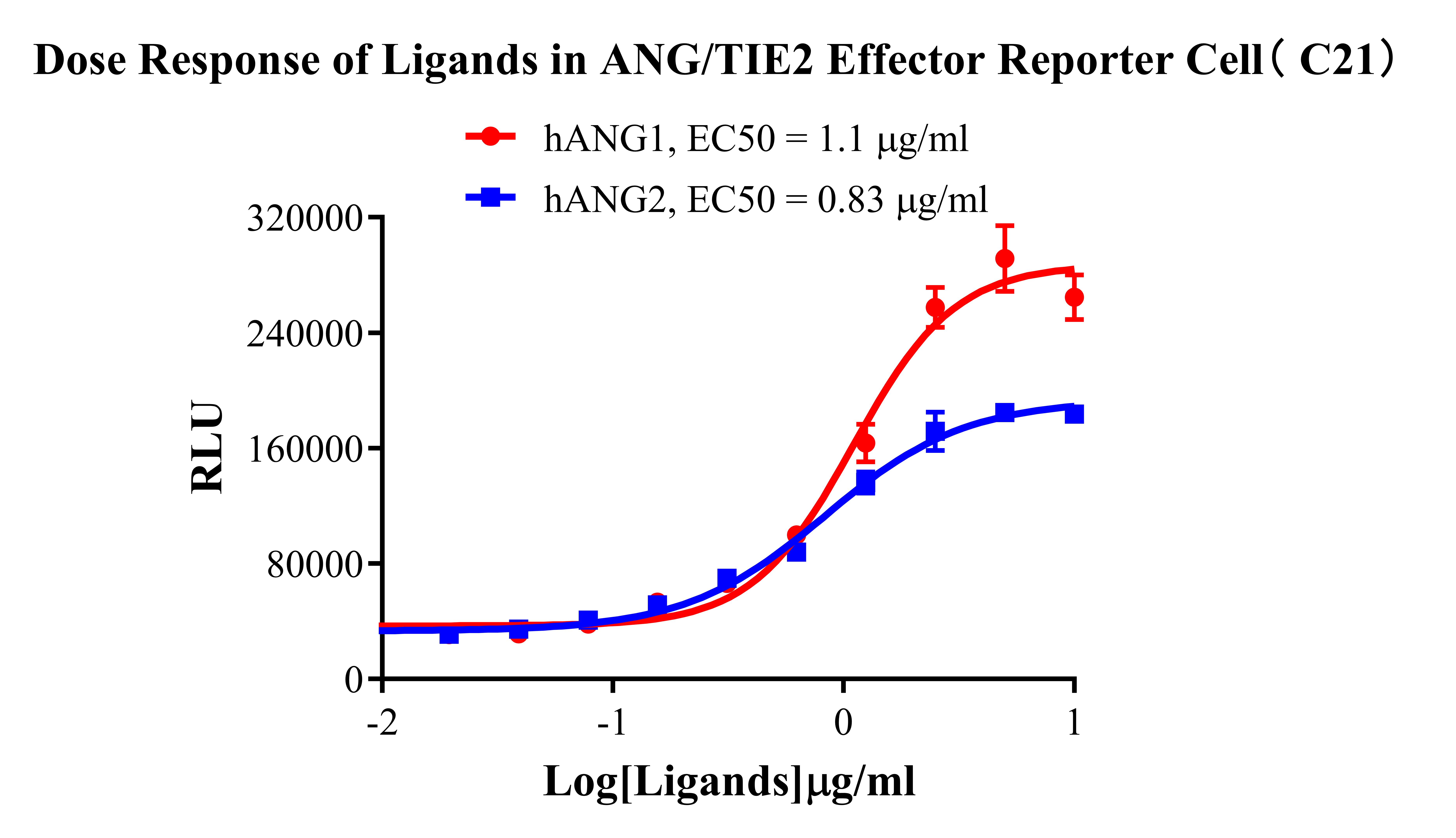 ANG/TIE2 Effector Reporter Cell 報告基因藥靶模型很好的模擬了體內(nèi) ANG/TIE2 的信 號轉(zhuǎn)導(dǎo)過程,原理見下圖所示。![]() Figure 1. ANG/TIE2 Effector Reporter Cell 細胞模型原理圖