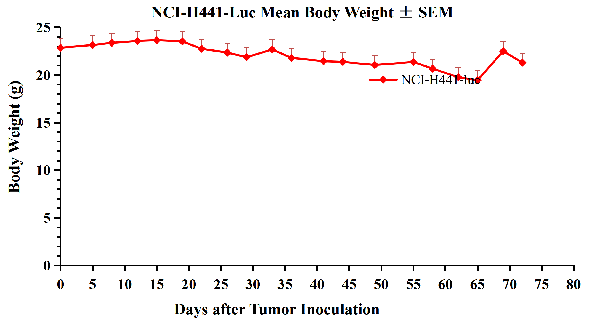 Figure 2. NCI-H441-Luc Mean Body Weight ± SEM.