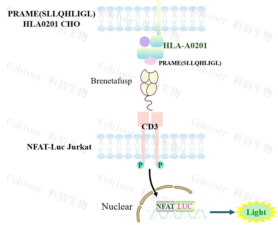 HLA-A*0201-PRAME 復(fù)合物是人類白細胞抗原(HLA)Ⅰ類分子與 PRAME 抗原肽的復(fù)合體,屬于主要組織相容性復(fù)合體(MHC)Ⅰ類家族成員。該復(fù)合物常用于 T 細胞受體 (TCR)療法,通過激活 T 細胞以識別并殺傷腫瘤細胞,原理見下圖所示。