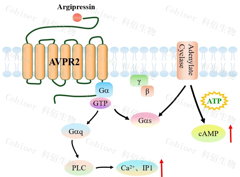 AVPR2(精氨酸加壓素受體 2 型)是一種主要分布于腎臟集合管上皮細胞基底側(cè)的 G 蛋白偶聯(lián)受體(GPCR),屬于加壓素/催產(chǎn)素受體家族,其特異性配體為垂體后葉分泌的 精氨酸加壓素(AVP,又稱抗利尿激素 ADH);該受體通過偶聯(lián) Gs 蛋白,激活腺苷酸環(huán) 化酶,升高 cAMP,激活蛋白激酶 A(PKA),最終磷酸化并促使水通道蛋白 AQP2 向細 胞膜轉(zhuǎn)位,從而增加水的重吸收、濃縮尿液并維持體液平衡;其功能缺陷是 X 連鎖隱性遺 傳性腎性尿崩癥(NDI) 的主要病因(占 90%),患者因基因突變導致受體失活,表現(xiàn)為 多尿、煩渴及低滲尿,而獲得性異常則與鋰中毒或梗阻性腎病相關;此外,AVPR2 作為藥 物靶點,其拮抗劑(如托伐普坦)已用于治療低鈉血癥和心力衰竭的體液潴留。 |