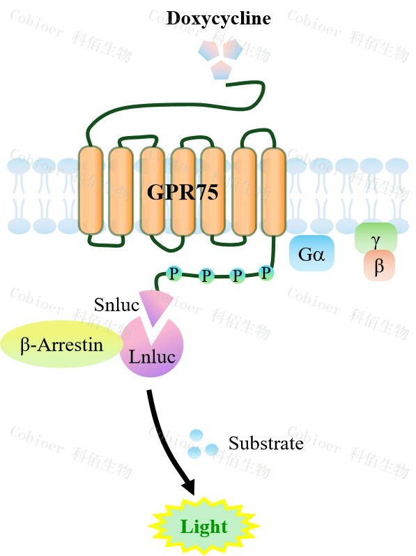 Inducible GPR75 β-Arrestin CHO 報(bào)告基因藥靶模型很好的模擬了體內(nèi) GPR75/β-Arrestin 的信號(hào)轉(zhuǎn)導(dǎo)過(guò)程,原理見(jiàn)下圖所示。![]() Figure 1. Inducible GPR75 β-Arrestin CHO 細(xì)胞模型原理圖 |