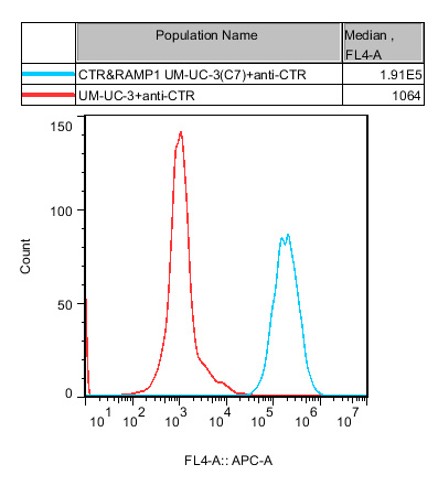 CTR&RAMP1 UM-UC-3 細(xì)胞藥靶模型很好的模擬了體內(nèi) CTR&RAMP1 的信號(hào)轉(zhuǎn)導(dǎo)過程,原理見下圖所示。![]() Figure 1. CTR&RAMP1 UM-UC-3 細(xì)胞模型原理圖 |