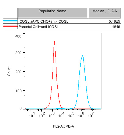 ![]() Figure 2. Recombinant ICOSL aAPC CHO stably expressing ICOSL. ![]() Figure 3. Blocking of ICOSL induced ICOS Effector Reporter Cell(C3) Activity by ICOSL Blocking Ab with ICOSL aAPC CHO(C42). |