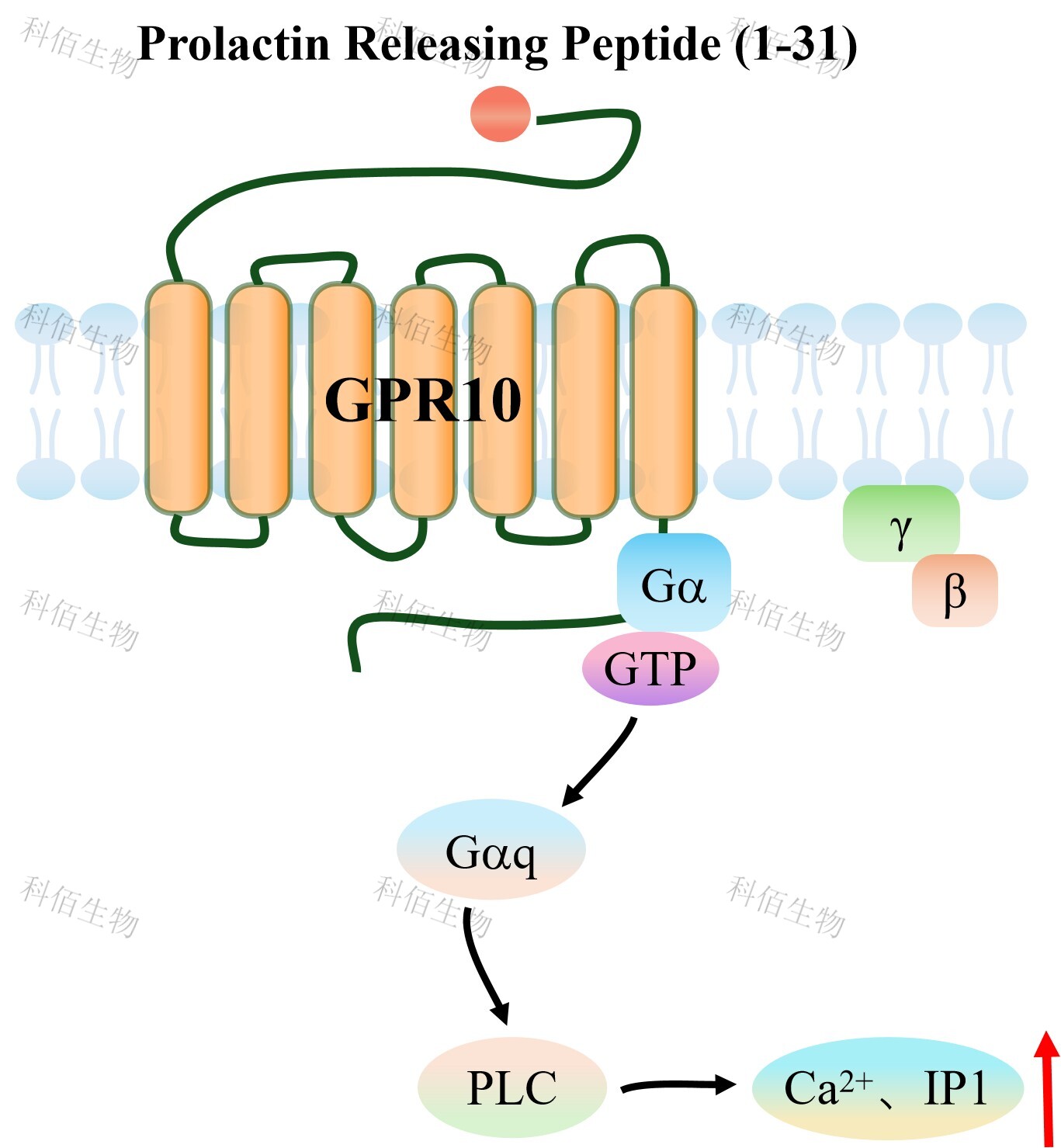 | GPR10(催乳素釋放肽受體,PrRPR),是一種典型的 A 類 GPCR,主要分布于中樞 神經系統(tǒng),特別是下丘腦、丘腦和腦干等調控能量平衡、痛覺和心血管功能的腦區(qū)。 GPR10 的內源性配體是催乳素釋放肽(PrRP),這是一種神經肽,最初因其促進催乳素釋 放的能力而得名,但后續(xù)研究發(fā)現其核心功能在于調節(jié)攝食和能量代謝。PrRP 存在兩種亞 型:PrRP31 和 PrRP20,它們以高親和力結合并激活 GPR10,啟動下游信號級聯(lián)反應。 當配體 PrRP 與 GPR10 結合后,會誘導受體構象變化,進而激活與之偶聯(lián)的 G 蛋白。 GPR10 主要與 Gq/11 家族 G 蛋白偶聯(lián),激活的 Gq 蛋白進一步激活 PLC,催化細胞膜上的 磷脂酰肌醇二磷酸(PIP2)水解生成三磷酸肌醇(IP3)和二酰甘油(DAG)。IP3 與內質 網上的 IP3 受體結合,促使細胞內鈣庫釋放 Ca 2+,導致胞內鈣離子濃度迅速升高;同時, DAG 激活蛋白激酶 C(PKC)。此外,研究也表明 GPR10 在某些細胞背景下能與 Gi/o 蛋 白偶聯(lián),抑制腺苷酸環(huán)化酶活性,降低胞內 cAMP 水平。這些信號通路的激活最終會調控 神經元興奮性、基因表達及神經肽釋放,從而介導 GPR10 在抑制食欲、調節(jié)能量代謝及削 弱阿片鎮(zhèn)痛效應等方面的生理功能。該受體的信號主要通過 G 蛋白偶聯(lián)受體激酶(GRK) 磷酸化和隨后的β-arrestin 結合來實現脫敏和內吞。 |