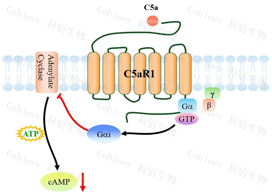| 補(bǔ)體 C5a 是由補(bǔ)體系統(tǒng)經(jīng) C5 轉(zhuǎn)化酶裂解 C5 產(chǎn)生的強(qiáng)效炎癥介質(zhì),作為核心過敏毒素 通過結(jié)合受體 C5aR1/C5aR2 驅(qū)動(dòng)中性粒細(xì)胞趨化、氧化爆發(fā)及炎性因子(IL-6/TNF-α)釋 放,在膿毒癥中誘發(fā)“細(xì)胞因子風(fēng)暴”,在自身免疫病(如類風(fēng)濕關(guān)節(jié)炎)中促進(jìn)組織侵 蝕,在腫瘤微環(huán)境募集髓系抑制細(xì)胞(MDSC)介導(dǎo)免疫逃逸。 C5aR1(CD88)是補(bǔ)體過敏毒素 C5a 的高親和力 GPCR,主要表達(dá)于髓系細(xì)胞(中性 粒細(xì)胞、單核細(xì)胞、肥大細(xì)胞),通過激活 Gi/Gq 蛋白-PI3K/MAPK 通路驅(qū)動(dòng)炎癥級(jí)聯(lián)反應(yīng)。 |
