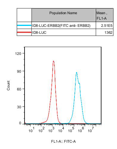 ![]() Figure 1.Recombinant ERBB2(HER2) Luc ID8 stably expressing ERBB2. |