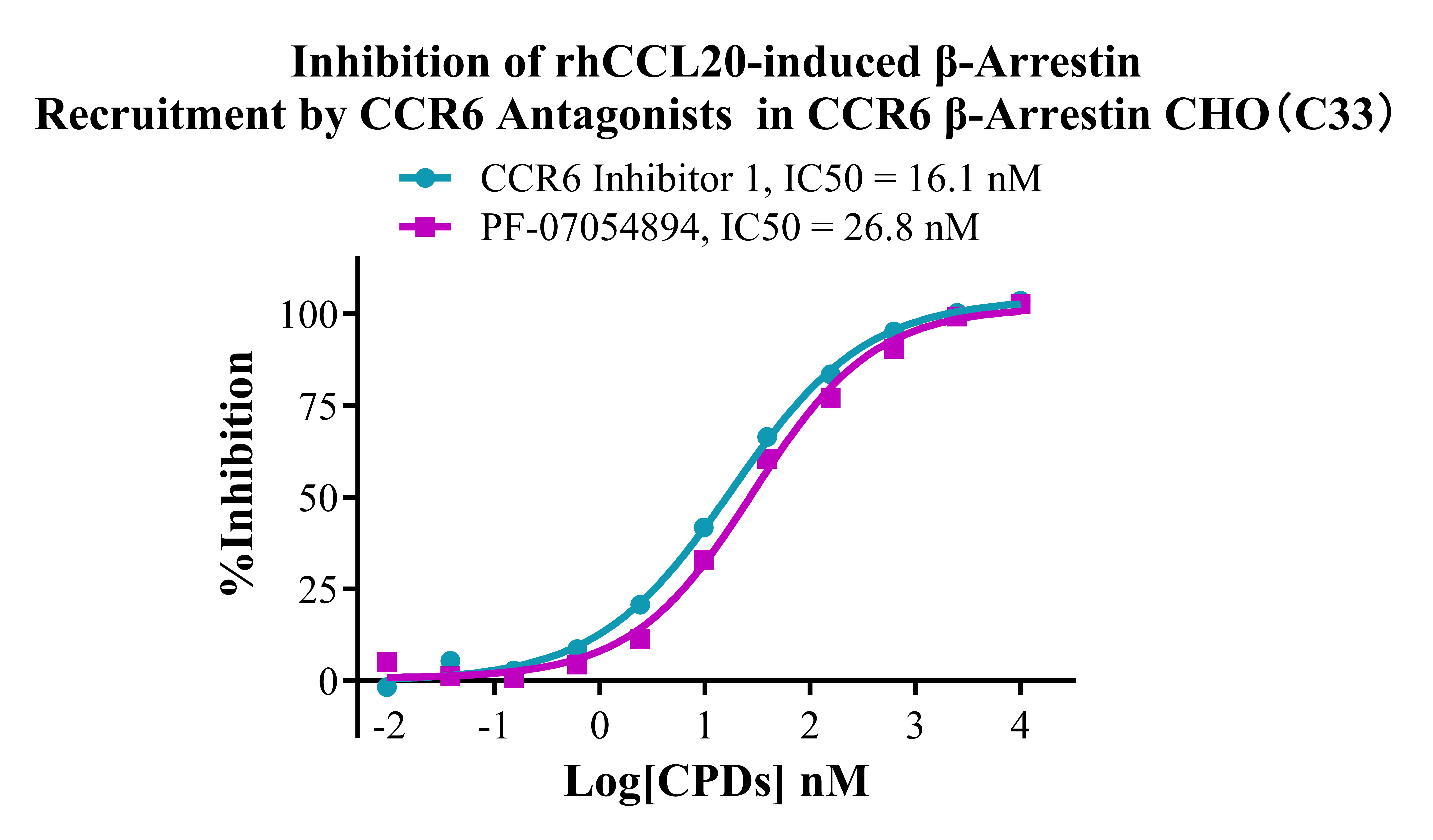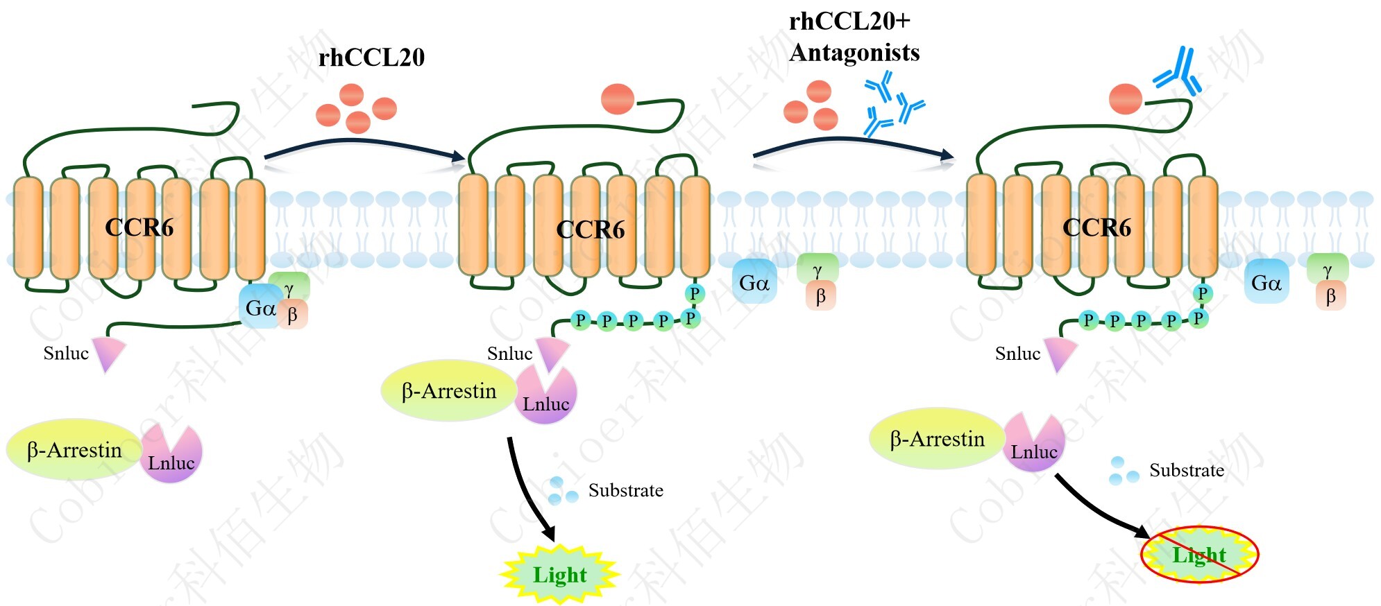 CCR6 β-Arrestin CHO 報告基因藥靶模型很好的模擬了體內(nèi) CCR6/β-Arrestin 的信號轉(zhuǎn) 導(dǎo)過程,原理見下圖所示。![]() Figure 1. CCR6 β-Arrestin CHO 細(xì)胞模型原理圖 |