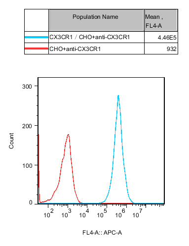 cAMP 在 G 蛋白偶聯(lián)受體(GPCR)信號轉(zhuǎn)導(dǎo)中是一種關(guān)鍵的第二信使。當配體結(jié)合到 GPCR,構(gòu)象發(fā)生變化,激活受體接著激活G蛋白,Gi的激活導(dǎo)致腺苷酸環(huán)化酶調(diào)控 cAMP 的下調(diào)。CX3CR1藥靶模型很好的模擬了體內(nèi)CX3CR1的信號轉(zhuǎn)導(dǎo)過程,原理見下圖所示。![]() Figure 1. CX3CR1 CHO 細胞模型原理圖 |