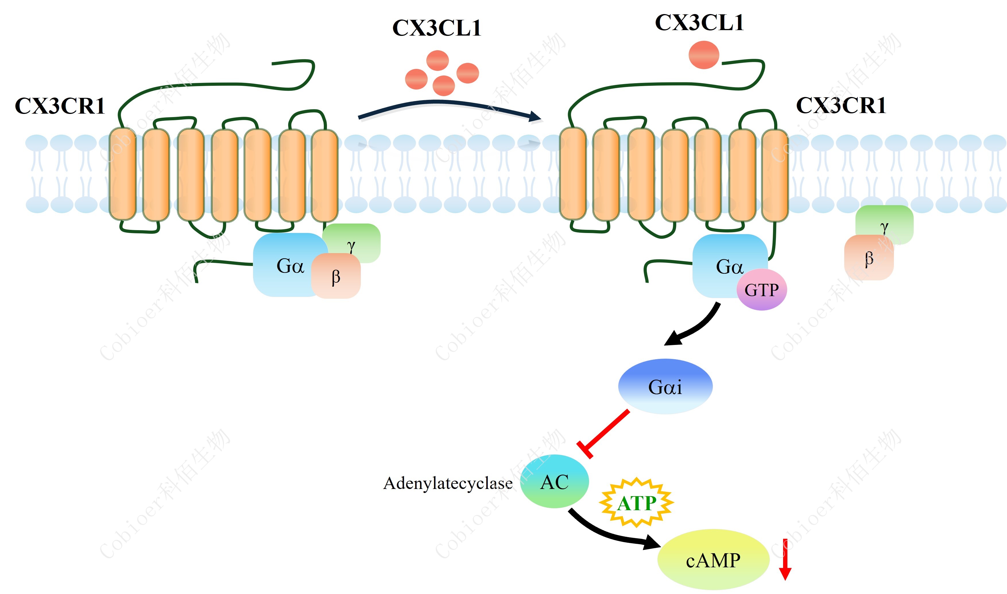 | CX3C 基序趨化因子受體 1 (CX3CR1),也稱為分形因子受體或 G 蛋白偶聯(lián)受體 13 (GPR13),是 G 蛋白偶聯(lián)受體 1 (GPCR1) 家族的跨膜蛋白,也是 CX3C 趨化因子受體亞 家族中唯一已知的成員。它是一種高度選擇性的表面受體,通常在單核細胞、CD4 T 細胞、 CD8 T 細胞、NK 細胞和 γδ 細胞上表達。CX3CL1 是一種獨特的趨化因子,可與其唯一受體 CX3CR1結(jié)合。 CX3CR1-CX3CL1細胞內(nèi)信號級聯(lián)負責調(diào)節(jié)細胞活性,使其達到更高的活性狀態(tài),如存活、遷移和增殖等。 |
