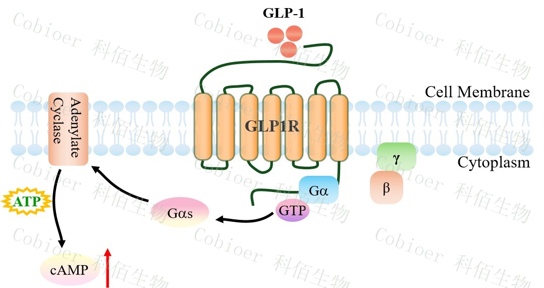 cAMP 在 G 蛋白偶聯(lián)受體(GPCR)信號轉(zhuǎn)導中是一種關鍵的第二信使。當配體結合到 GPCR,構象發(fā)生變化,激活受體接著激活 G 蛋白,Gs 的激活導致腺苷酸環(huán)化酶調(diào)控 cAMP 的升高。GLP1R 藥靶模型很好的模擬了體內(nèi) GLP1R 的信號轉(zhuǎn)導過程,原理見下圖所示。![]() Figure 1. GLP1R CHO 細胞模型原理圖 |