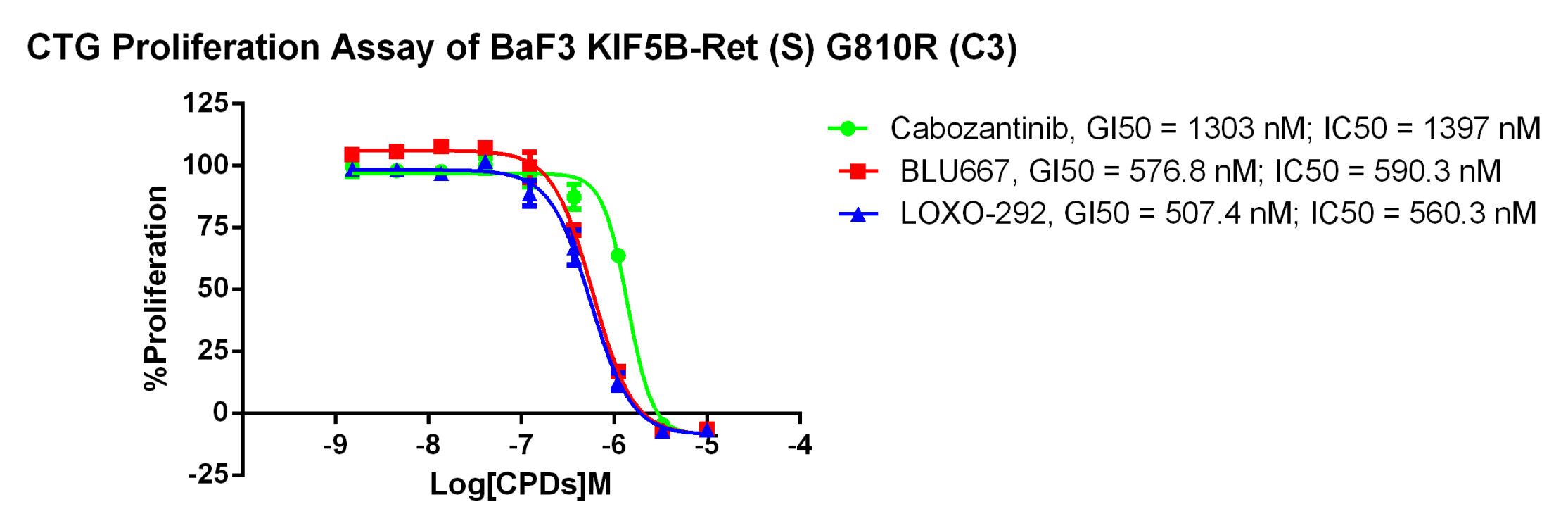 Figure 4. CTG Proliferation Assay of BaF3 KIF5B-Ret (S) G810R (C3). |