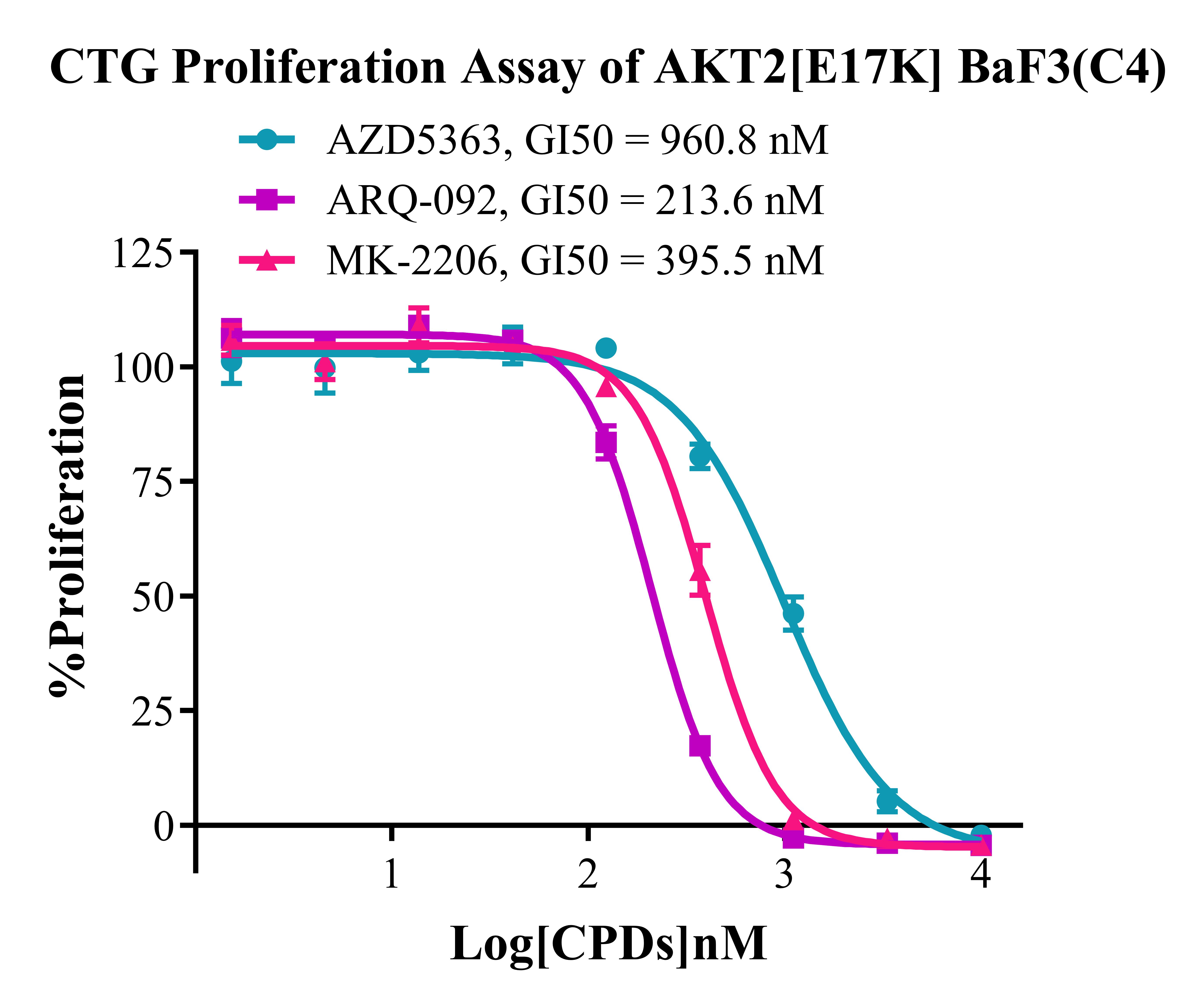 BaF3(小鼠原 B 細胞)的生長和增殖需要 IL-3 的維持。通過引入各種表達激酶的基因, 能作為 BaF3 的驅(qū)動基因,讓 BaF3 不再依賴 IL-3 而增殖,進而激酶基因成為 BaF3 增殖依賴的驅(qū)動基因,用于評估小分子藥物對激酶的靶向抑制作用,原理及流程見下圖所示。