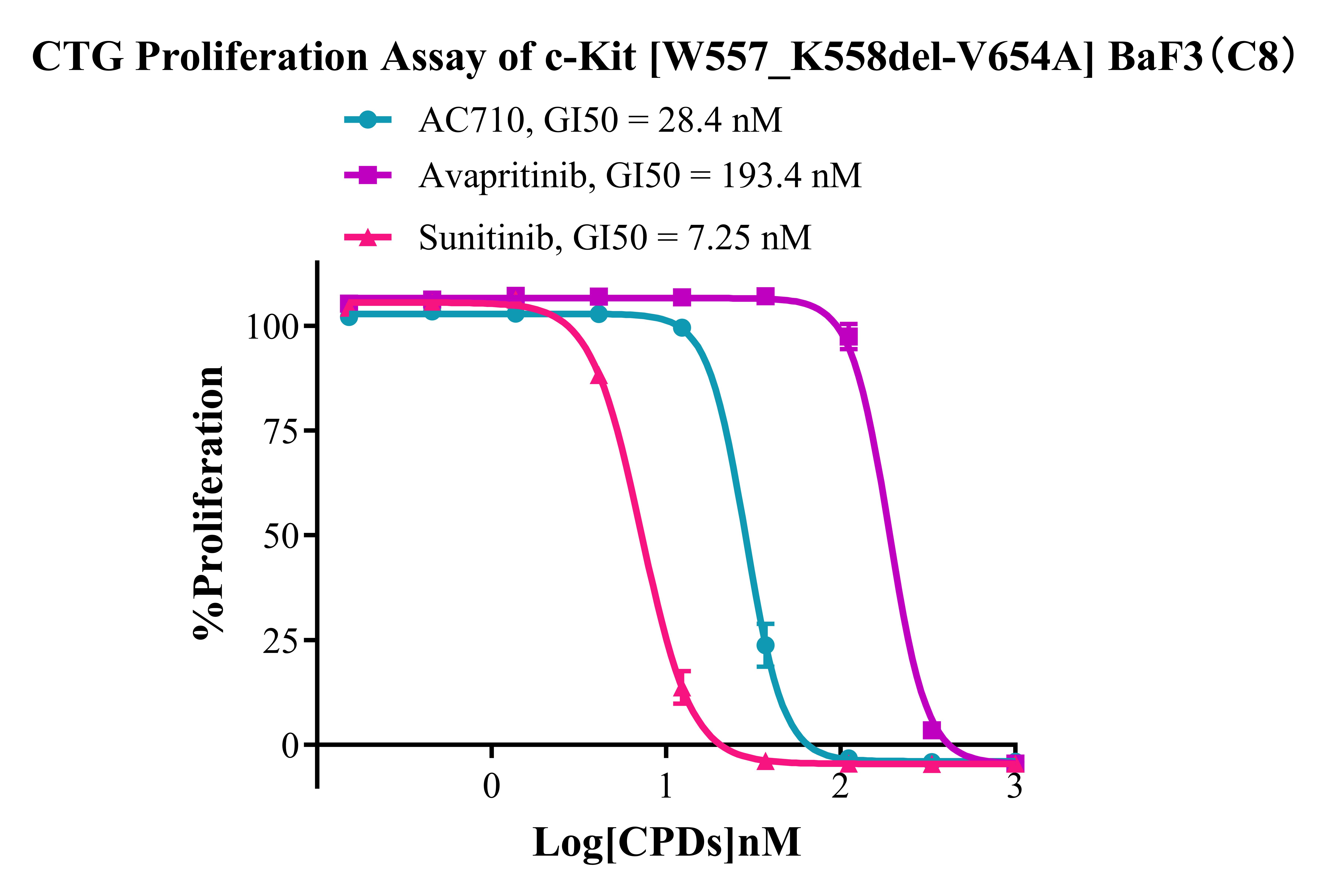 Figure 5. CTG Proliferation Assay of c-Kit [W557_ K558del-V654A] BaF3(C8). |