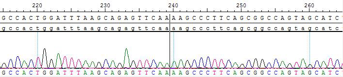 2.Sanger of BCR-ABL1 [P223S]/BaF3 Figure 3. BCR-ABL1 [P223S]/BaF3 P223S Figure 4. BCR-ABL1 [P223S]/BaF3 Fusion |
