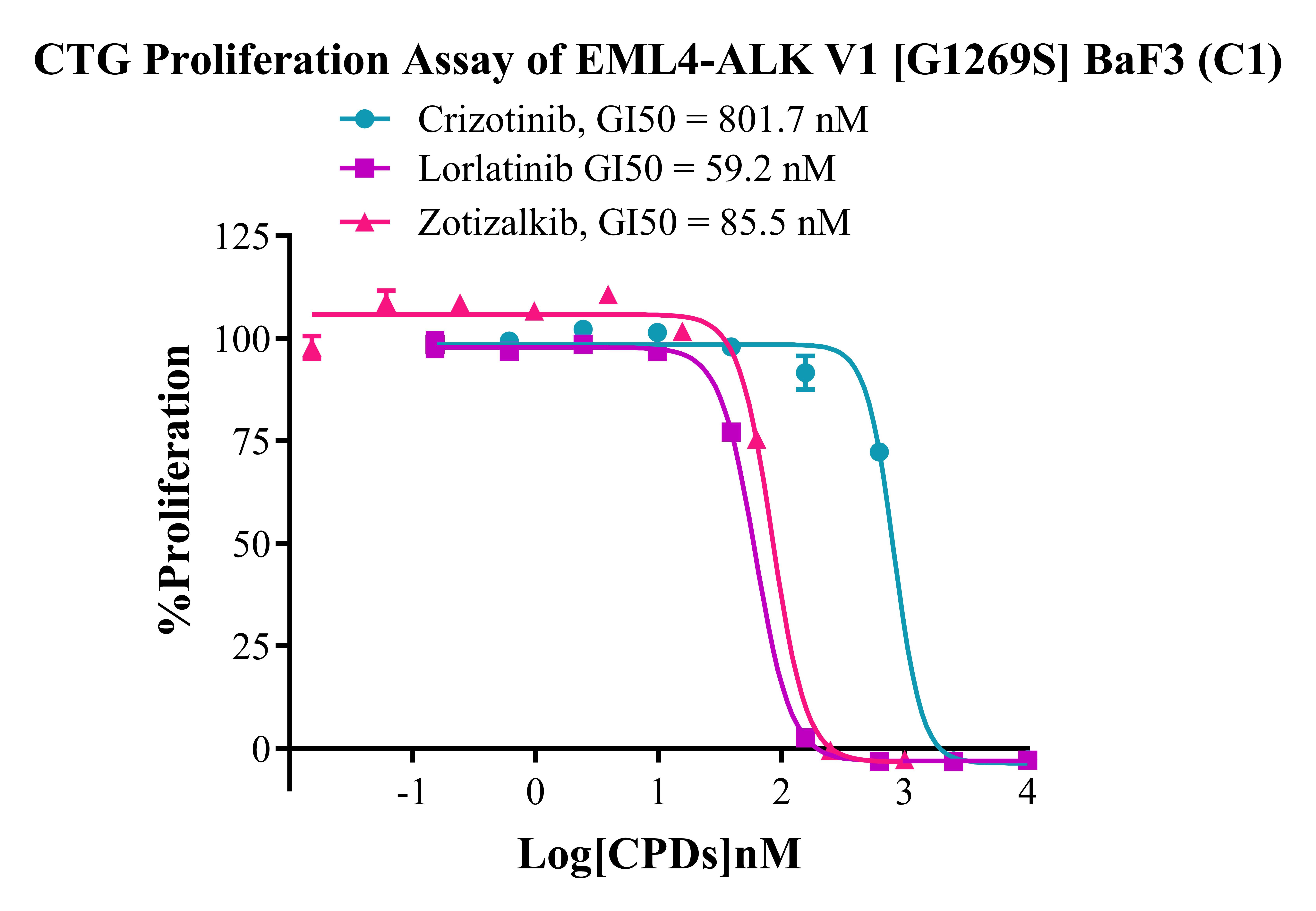 Figure 4. CTG Proliferation Assay of EML4-ALK V1 [G1269S] BaF3(C1). |