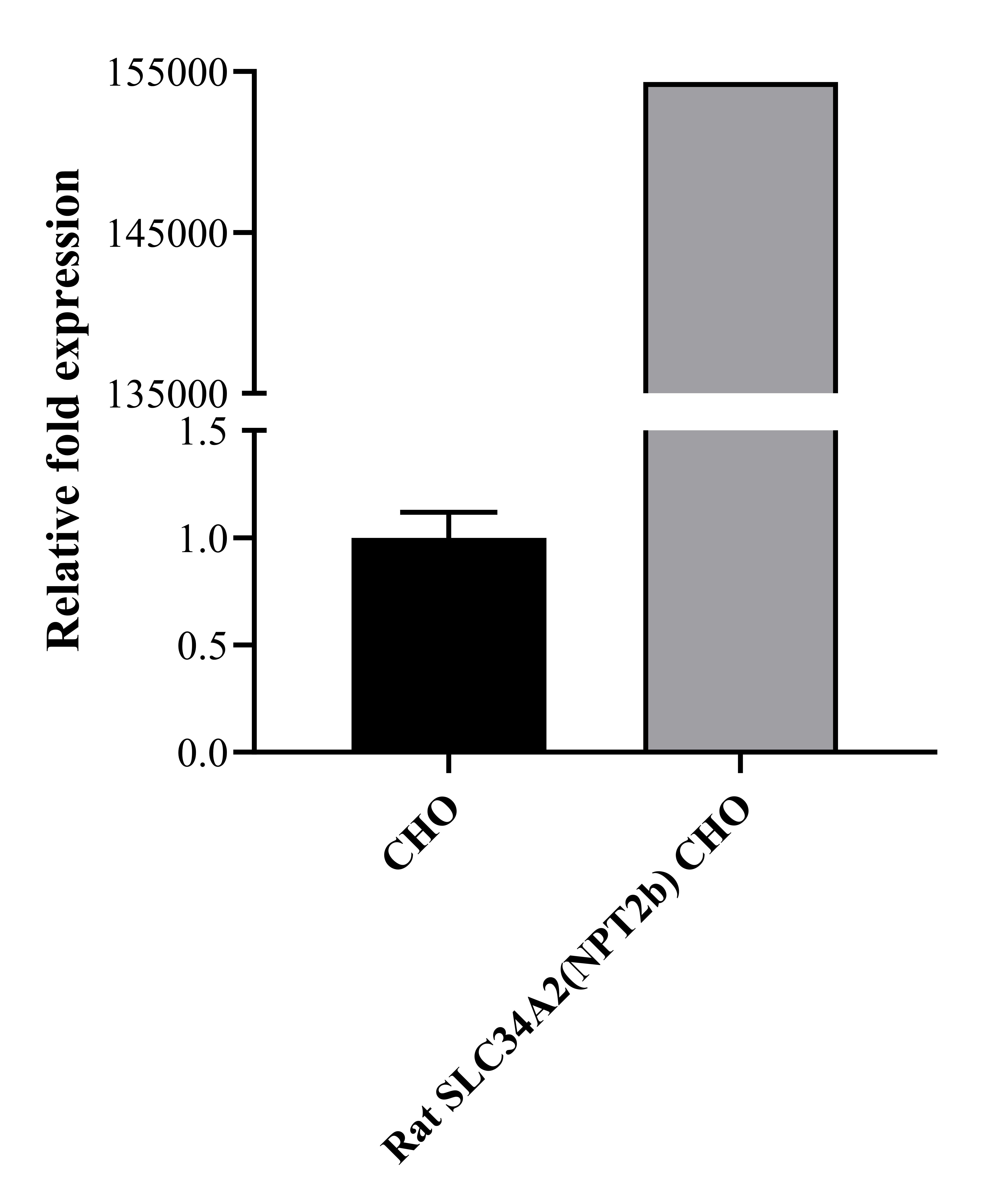 Figure 1.Rat SLC34A2(NPT2b) CHO 細(xì)胞 qPCR 驗(yàn)證 SLC34A2(NPT2b) 的表達(dá)。