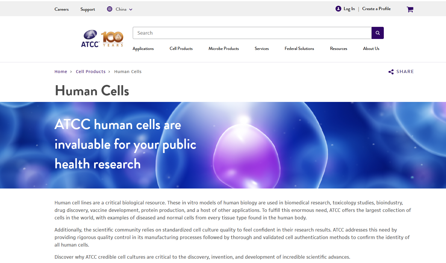 ATCC (American Type Culture Collection) 非營(yíng)利性的全球生物資源中心和標(biāo)準(zhǔn)組織,也是認(rèn)證細(xì)胞系和微生物的領(lǐng)先開(kāi)發(fā)商和供應(yīng)商,擁有世界上最大、最廣泛的人類(lèi)和動(dòng)物研究細(xì)胞系產(chǎn)品目錄,主要提供各種細(xì)胞系、微生物株、原代細(xì)胞、基因組和其他生物材料。它包含了數(shù)千種細(xì)胞系,包括人類(lèi)、動(dòng)物和昆蟲(chóng)的細(xì)胞系。常見(jiàn)的類(lèi)型包括癌癥細(xì)胞系、免疫細(xì)胞、干細(xì)胞、以及轉(zhuǎn)基因細(xì)胞系。且細(xì)胞系數(shù)據(jù)中包含了詳細(xì)的細(xì)胞表征信息,如形態(tài)學(xué)、分子標(biāo)記、基因表達(dá)譜、增殖能力、傳代歷史等。它所提供的細(xì)胞形態(tài)圖是國(guó)際公認(rèn)的細(xì)胞標(biāo)準(zhǔn),大多數(shù)研究學(xué)者在購(gòu)買(mǎi)細(xì)胞后都會(huì)與ATCC數(shù)據(jù)庫(kù)中的細(xì)胞圖片作對(duì)照。
