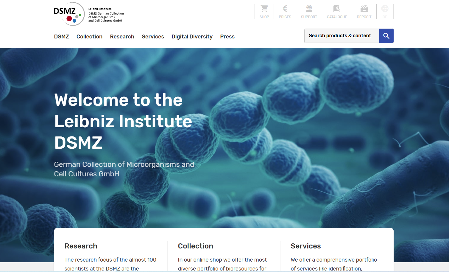 DSMZ成立于1969年,是德國(guó)的國(guó)家菌種保藏中心。該中心一直致力于細(xì)菌、真菌、質(zhì)粒、抗菌素、人體和動(dòng)物細(xì)胞、植物病毒等的分類(lèi)、鑒定和保藏工作。作為世界上最大的保藏中心之一,DSMZ目前收藏超過(guò)70,000種產(chǎn)品,包括約31,000種不同的細(xì)菌和6,500種真菌菌株,830種人和動(dòng)物細(xì)胞系,1,500種植物病毒和抗血清,2,000種質(zhì)粒和噬菌體以及13,000種不同類(lèi)型的細(xì)菌基因組DNA。
