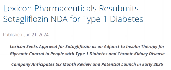 “我們對索格列凈對1型糖尿病和慢性腎病患者的益處/風(fēng)險充滿信心,我們的團隊一直堅定地確定并尋求監(jiān)管途徑。”Lexicon首席執(zhí)行官Lonnel Coats表示:“我們現(xiàn)在距離將這種重要的潛在療法推向市場又近了一步,這些人患有1型糖尿病和慢性腎病,并且可以從胰島素治療的輔助治療中受益,以控制血糖。”