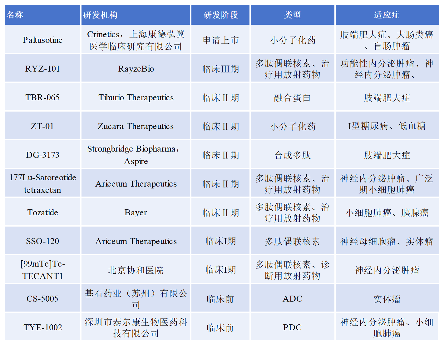 最近,賽諾菲獲得了Zucara Therapeutics公司靶向SSTR2的Ⅰ型糖尿病新藥ZT-01的優(yōu)先談判權(quán)。目前,關(guān)于SSTR2靶點(diǎn)有多種藥物在開發(fā),部分在研藥物進(jìn)展如下: