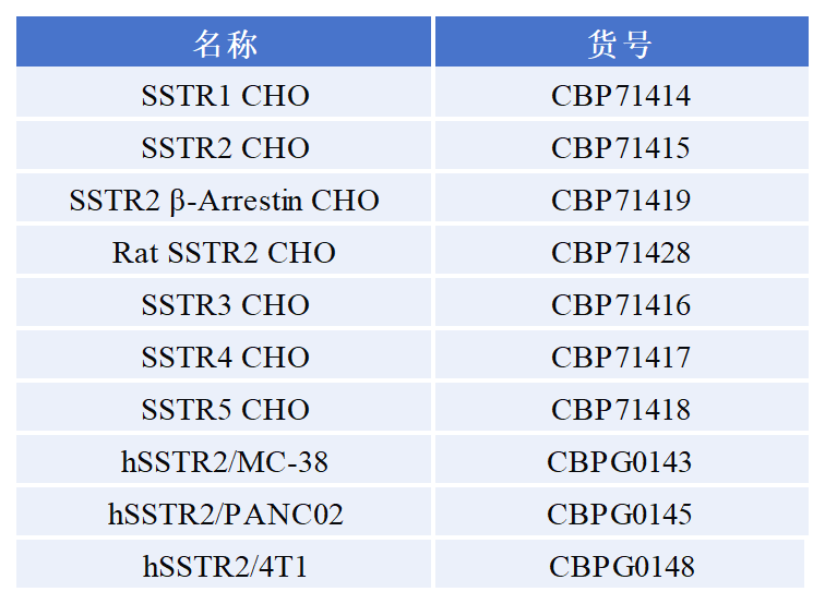 生長抑素受體(Somatostatin receptor,SSTRs)是 GPCR 超家族中的Class A家族的成員,共有 5 種亞型,分別為SSTR1-SSTR5,其中SSTR2是唯一一種有SSTR2a和SSTR2b這2種異構(gòu)體的SSTR亞型受體蛋白。SSTR2廣泛分布于正常組織中,如腦下垂體、胰島、腎上腺、胸腺、胃腸道以及免疫系統(tǒng)等,在不同受體的組織,表達(dá)譜各不相同。SSTR2 在神經(jīng)母細(xì)胞瘤、垂體腺瘤、黑色素瘤、甲狀腺癌以及許多神經(jīng)內(nèi)分泌腫瘤中高表達(dá)。