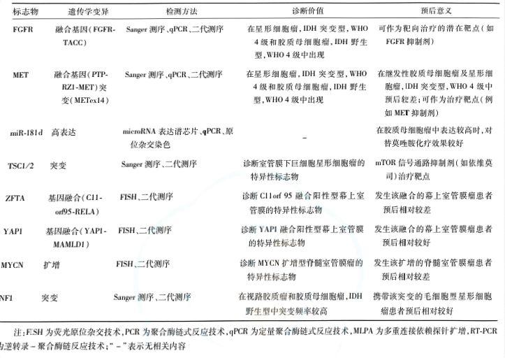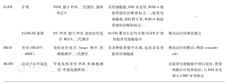 腦膠質(zhì)瘤確診需通過腫瘤切除術(shù)或活組織檢查術(shù)獲取標(biāo)本,進(jìn)行組織病理學(xué)和分子病理學(xué)整合診斷,以確定病理分級和分子亞型。分子標(biāo)志物對腦膠質(zhì)瘤的個(gè)體化治療及臨床預(yù)后判斷具有重要意義。